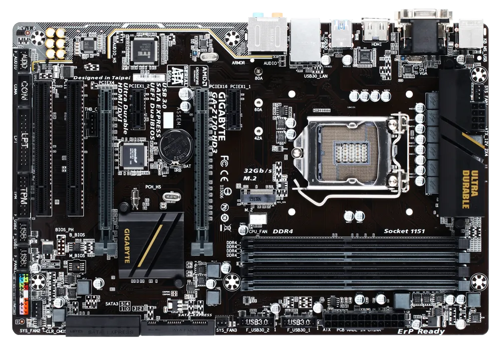 The Gigabyte Z170 Motherboard is designed for high-performance PC builds, supporting Intel 6th Gen Core processors, DDR4 memory, M.2 SSDs, and PCIe graphics. Perfect for gamers and power users seeking speed and reliability.